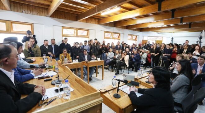 La Municipalidad de Ushuaia representada por la viceintendenta Gabriela Muñiz Siccardi junto al secretario de Articulación Política y Relaciones Parlamentarias, Omar Becerra participaron de la 35° período de sesiones ordinarias del Concejo Deliberante de Tolhuin.