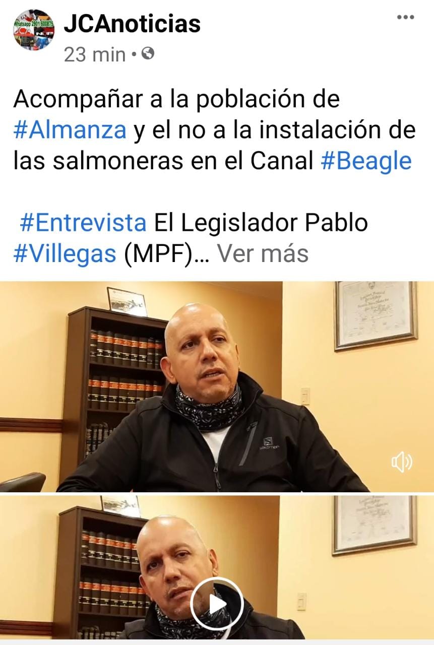 También insistió en el proyecto para prohibición de salmoneras en el Beagle. Más información facebook JCAnoticias-