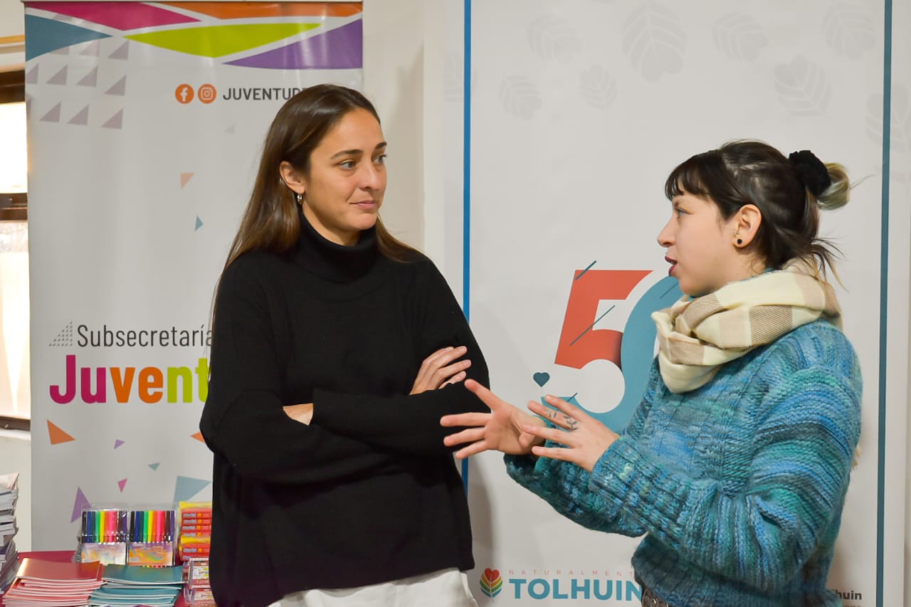 La subsecretaria de Juventudes, Ivana Olariaga, junto a la directora ejecutiva del Instituto Nacional de Juventudes, Macarena Sánchez, realizaron recorridos para interactuar con juventudes de toda la provincia, y a la vez realizaron la entrega de materiales de reparación y kits de apoyo escolar y deportivo a diversos espacios.