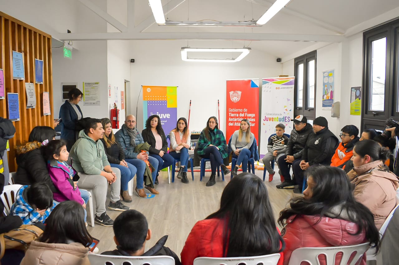 En la ciudad de Ushuaia, el encuentro fue junto a la Dirección Provincial de Relevamiento, Relaciones y Gestión Territorial, a cargo de Analía Escalante y Paul Baiz. La entrega del material para refacción fue a las y los jóvenes que participan en el Club Deportivo “Magallanes FC”. En la ciudad de Tolhuin, junto a la secretaria de Derechos Humanos y Diversidad, Abigail Astrada, se entregó un kit escolar a referentes de la “Biblioteca Popular Malvinas Argentinas”.