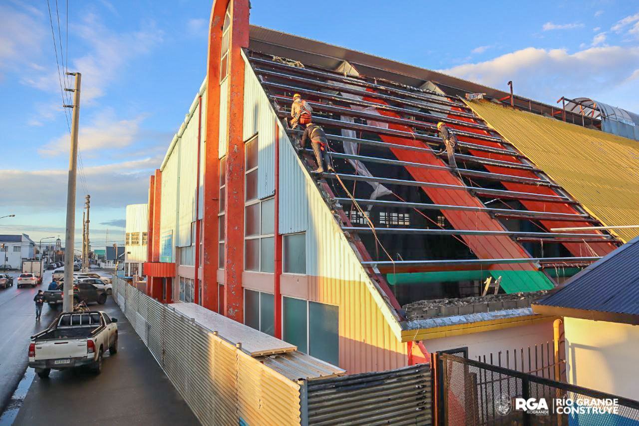 Respecto al tipo de intervenciones que se llevan adelante son el recambio integral de la cubierta, se avanza con los trabajos del segundo tramo del techo, así como de pintura. Además, los materiales que se utilizan son chapa panel y la estructura es galvanizada para que no haya inconvenientes con el vapor ni con las filtraciones.