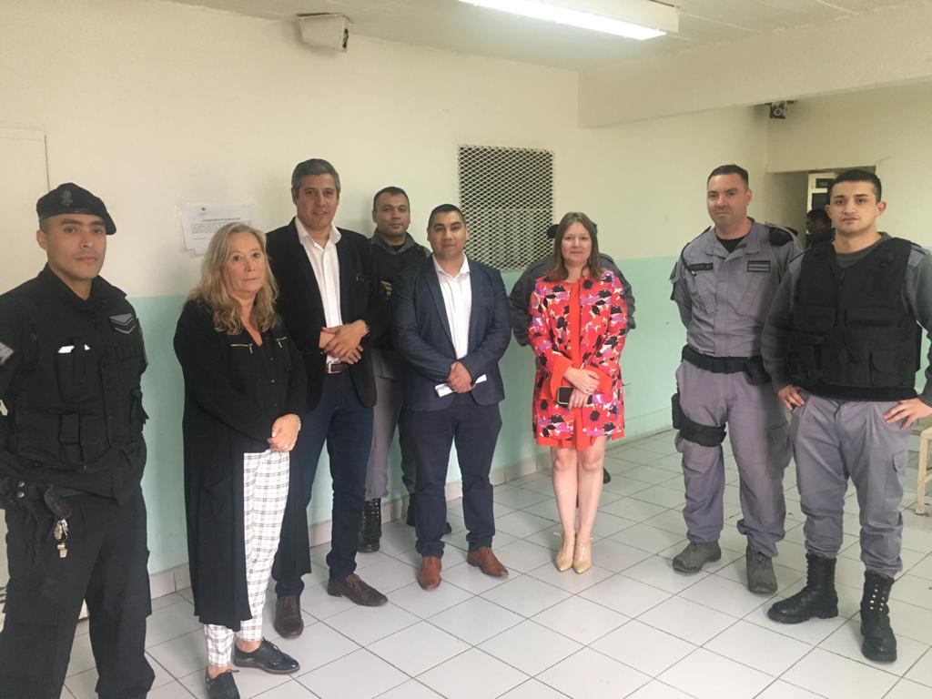 La ministra de Gobierno, Justicia y Derechos Humanos, Adriana Chapperón junto a la secretaria de Justicia, Daiana Freiberger y el Jefe del Servicio Penitenciario, José Claudio Canovas recorrieron la alcaldía central de Ushuaia.