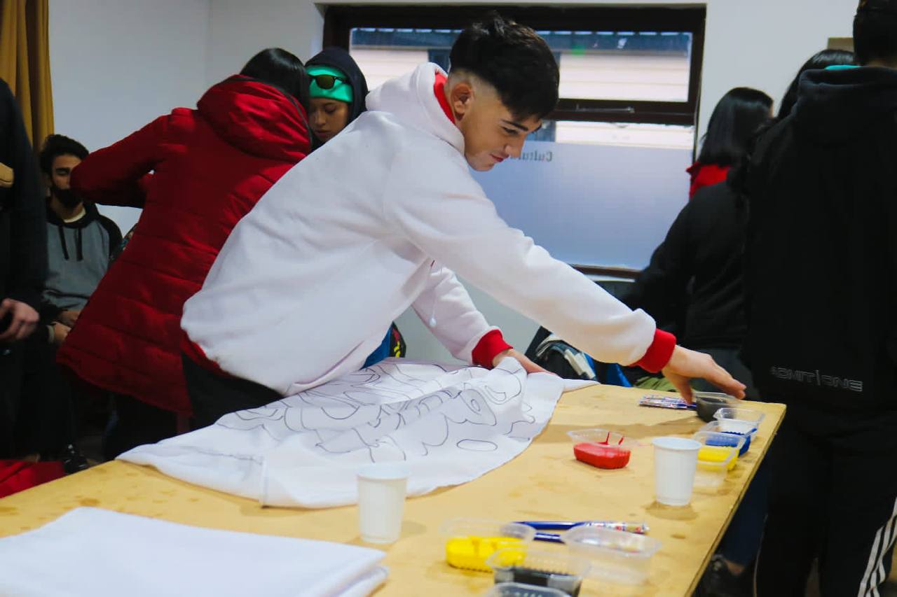 En esta primera instancia, se llevaron adelante intervenciones artísticas; en las que los y las jóvenes tolhuinenses debieron confeccionar banderas que los identificarán en adelante para el resto de las jornadas. Para esto se entregaron los insumos necesarios -pintura, pinceles, lápices, fibrones, entre otros- y un lienzo con las siglas de cada curso, diseñadas por la tallerista Lioren Burgo.