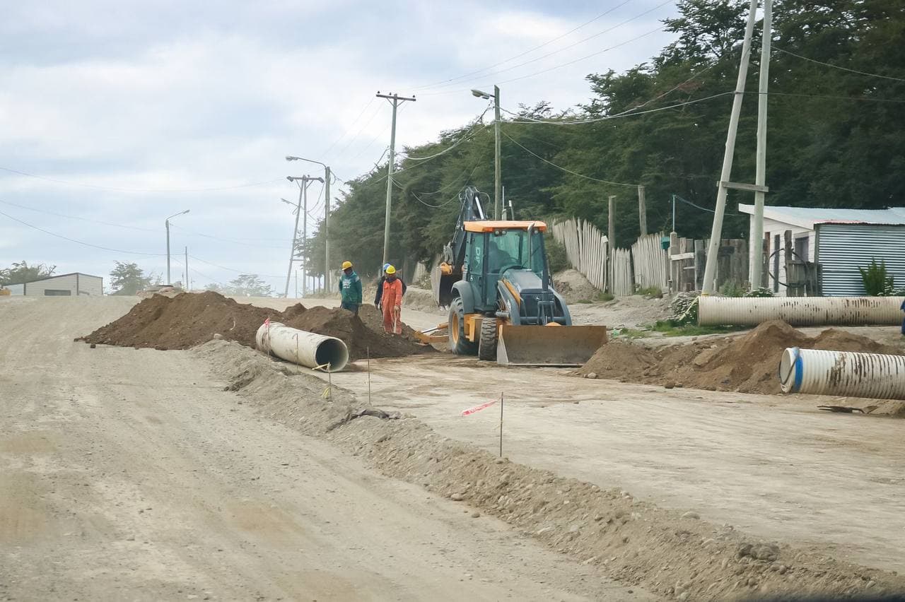 Trabajadores se encuentran en la zona realizando tareas de conexión de caños pluviales para la obra de pavimentación de la avenida próxima a finalizar.
