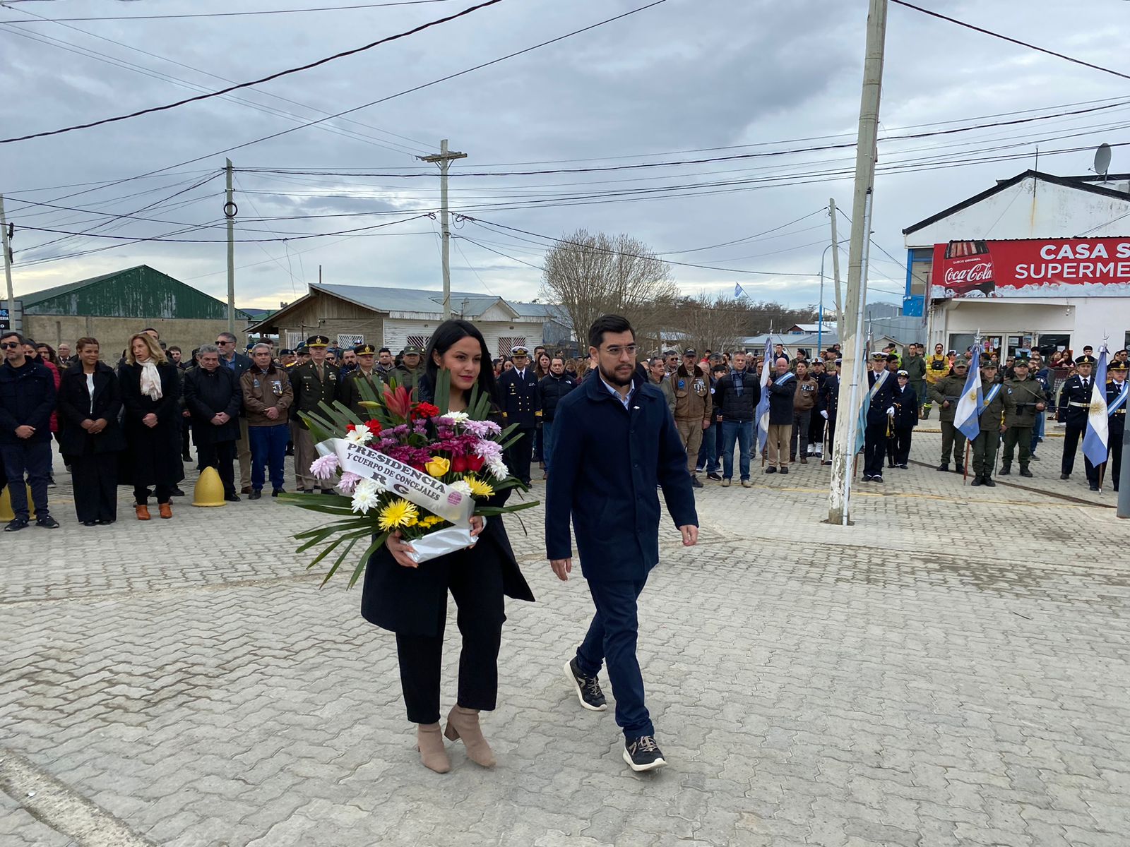 El acto central estuvo encabezado por el intendente del municipio de la ciudad mediterránea, Daniel Harrington, y del mismo también participaron ciudadanos y antiguos pobladores, distintas autoridades del ámbito provincial, y de las municipalidades de Río Grande y Ushuaia.