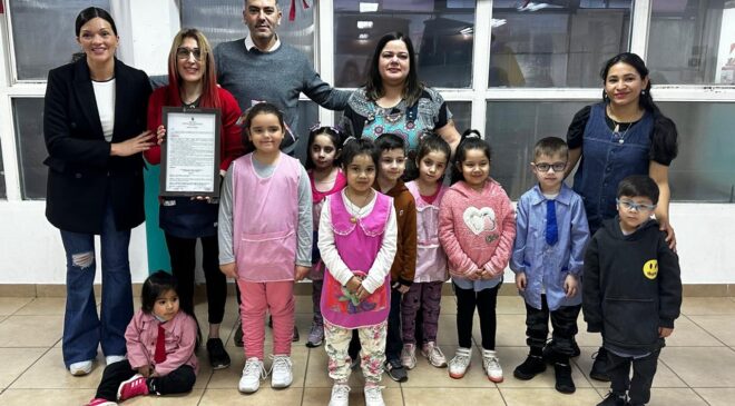 La presidente del Concejo Deliberante, Guadalupe Zamora y el concejal Matías Löffler asistieron este miércoles, al Jardín Arco Iris con la finalidad de reconocer el proyecto ¿Quién nos visita en la plaza y en el vivero del jardín?” desarrollado por los 16 niños y niñas de la salita Azul y entregaron una Declaración de Interés Educativo y Cultural Municipal.