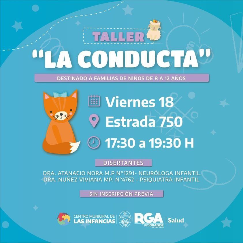 En esta oportunidad, el Municipio de Río Grande presenta el taller de “La Conducta”, el tercer encuentro de 5 que se realizarán a lo largo del mes de agosto.