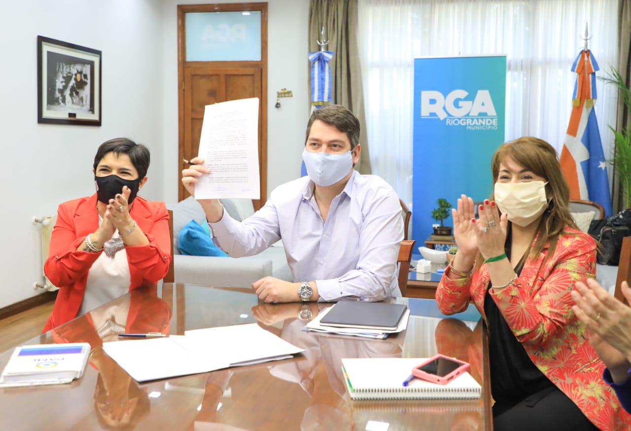 El Intendente de Río Grande, junto a la directora ejecutiva del Programa de Atención Médica Integral Tierra del Fuego, Yésica Garay, encabezaron una importante firma de un convenio que permite mejorar la atención sanitaria de los afiliados y jubilados de la ciudad.
