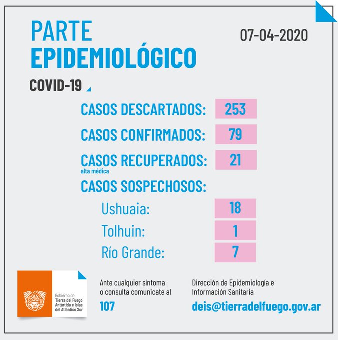 Coronavirus: 79 casos positivos en Tierra del Fuego DestacadaNovedades By Super User Last updated Abr 8, 2020 Share FacebookTwitterGoogle+WhatsAppEmail Share FacebookTwitterGoogle+WhatsAppEmail