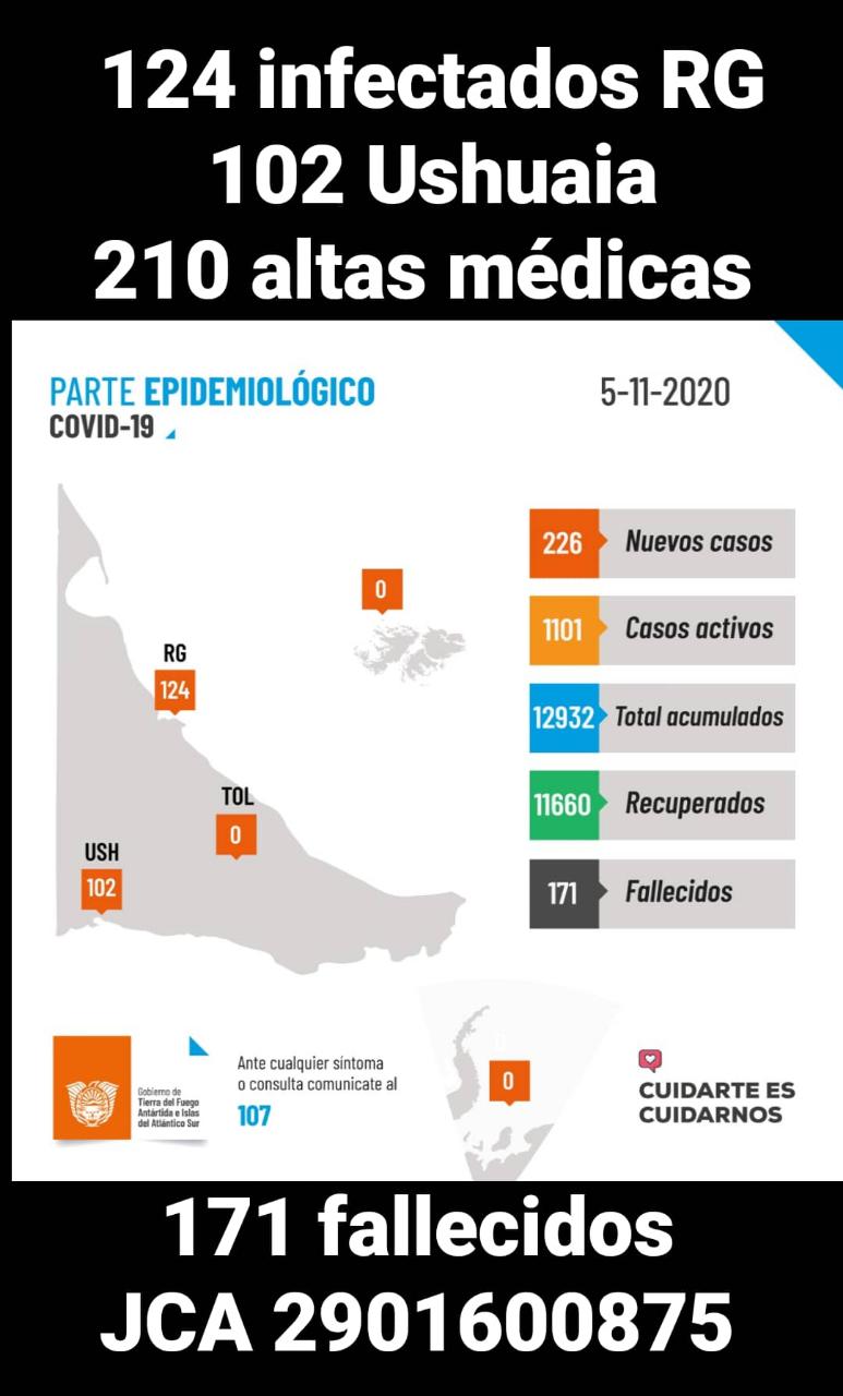 En Río Grande se registran 7309 casos positivos totales por PCR. Se registran 139 pacientes fallecidos hasta la fecha.