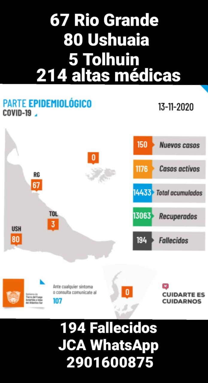 En Río Grande se registran 7746 casos positivos totales por PCR. Se registran 151 pacientes fallecidos hasta la fecha.