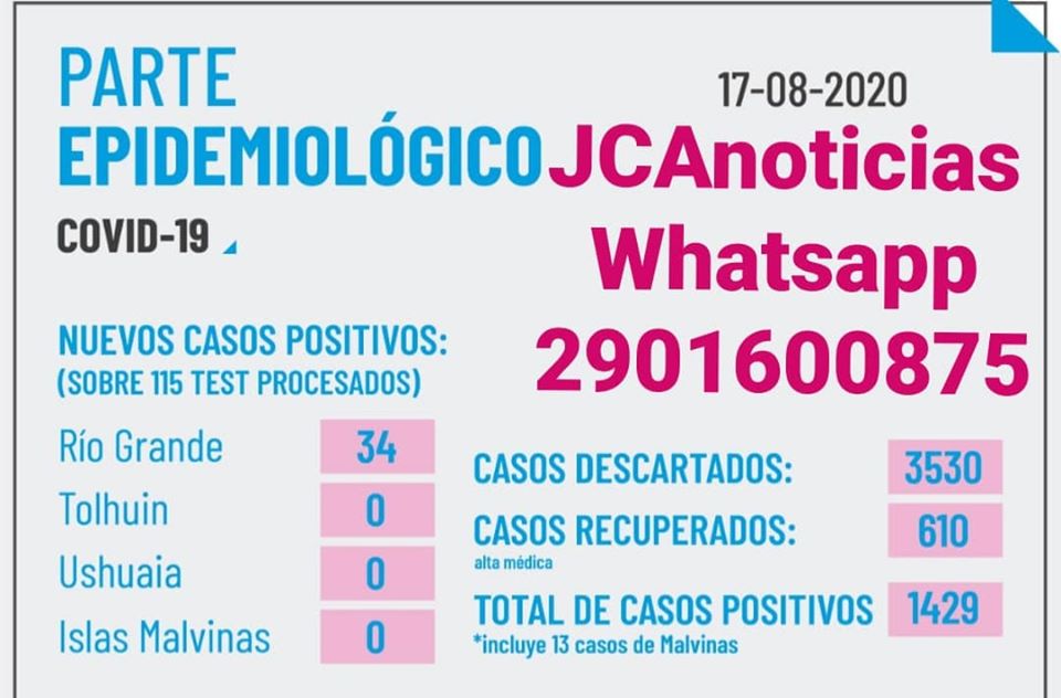 *TOTALIDAD DE CASOS CONFIRMADOS EN TIERRA DEL FUEGO A LA FECHA 1429* (*). Existe una diferencia con el parte nacional por una cuestión de carga de datos.