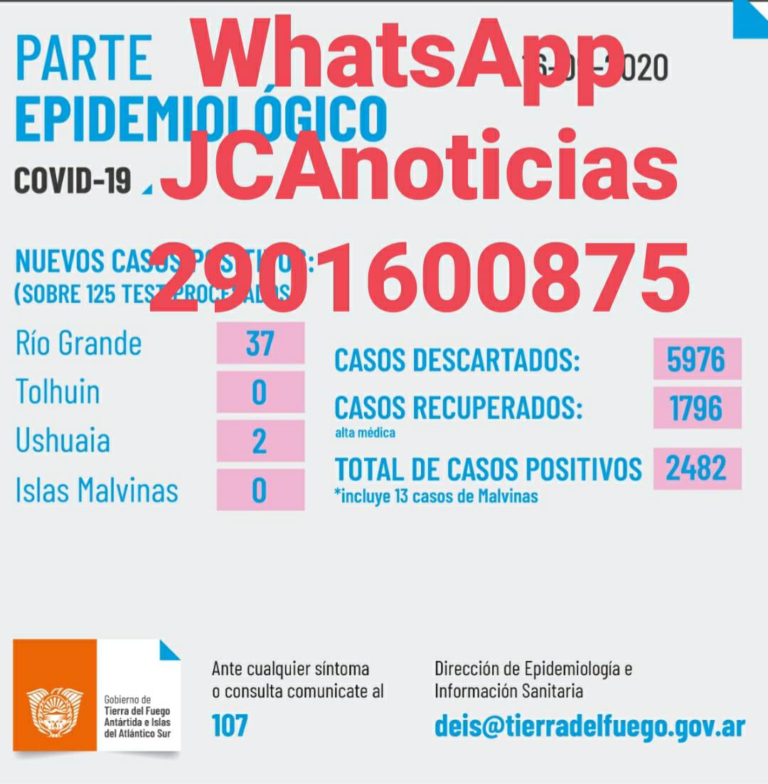 37 nuevos infectados y en #RíoGrande y dos en la ciudad de #Ushuaia