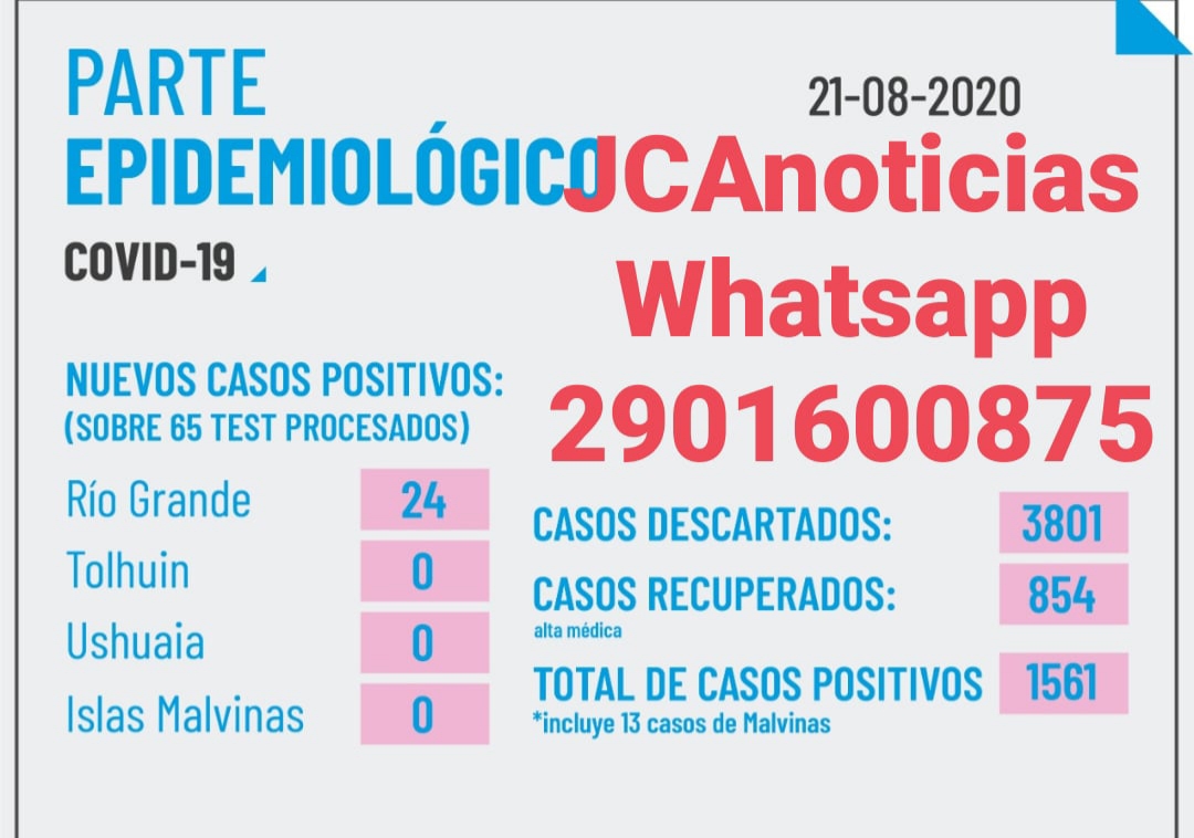 Covid-19 en Tierra del Fuego hoy viernes 24 nuevos infectados en Río Grande y más de 850 personas recuperadas