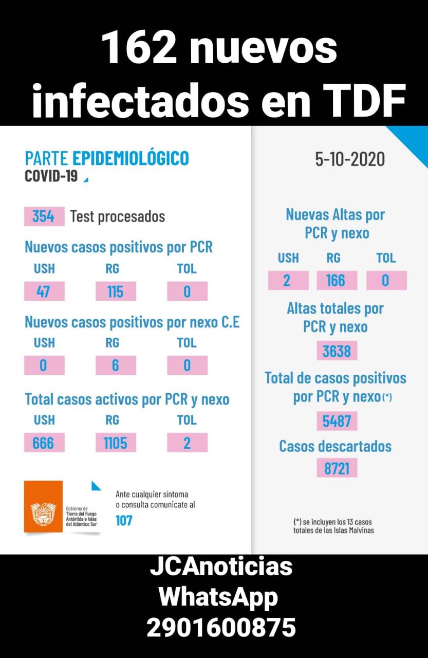 Ushuaia: 207 casos tienen nexo epidemiológico confirmado, casos en investigación 20 y casos con transmisión comunitaria 634.
