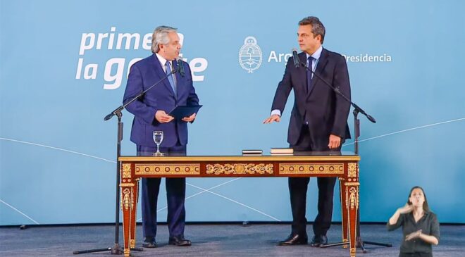 Tras la jura, el Gobernador destacó “la enorme responsabilidad que asume Sergio Massa y su llegada representa una oportunidad para aunar criterios y direccionar esfuerzos que nos permitan superar esta crisis y enfrentar los nuevos desafíos que se presentan en materia económica y productiva y que son imprescindibles para el crecimiento del país”.