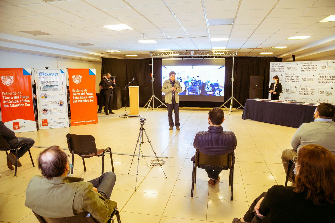 El Gobernador encabezó el acto que se realizó en el Centro Cultural Yaganes en Río Grande. Participaron vía remota desde Ushuaia la Vicegobernadora Mónica Urquiza, la Ministra de Salud, Judit di Giglio, funcionarios y funcionarias del gabinete provincial y representantes del sistema de salud fueguino._