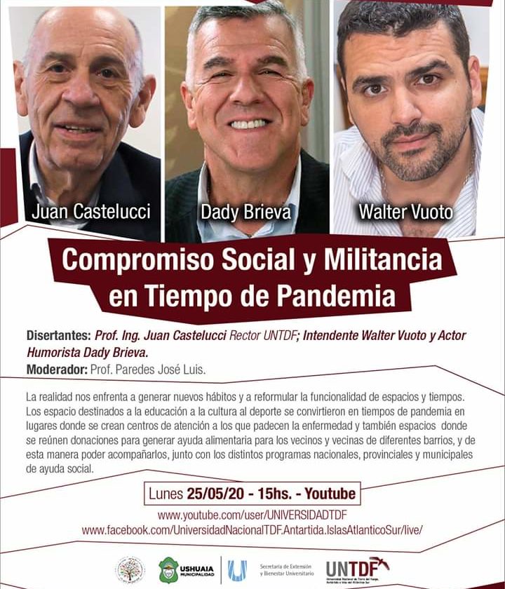 El intendente Walter Vuoto fue invitado a participar junto al rector de la Universidad Nacional de Tierra del Fuego, Antártida e Islas del Atlántico Sur, Juan José Castelucci y al actor y conductor Dady Brieva de una charla virtual sobre “Compromiso Social y Militancia en Tiempo de Pandemia”.