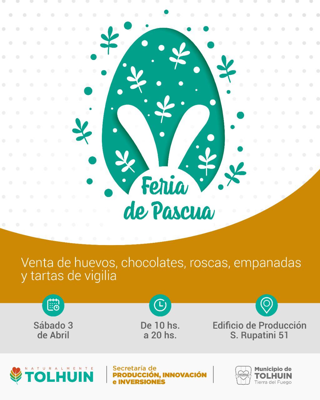El Municipio de Tolhuin, a través de la Secretaría de Producción, Innovación e Inversiones, convoca e invita a participar de la Feria de Pascuas en Tolhuin.