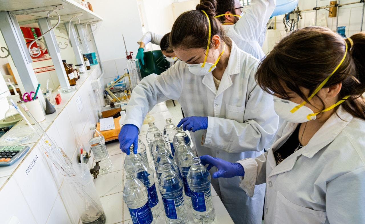El laboratorio de la Dirección de Bromatología de la Municipalidad de Ushuaia comenzó con la producción del alcohol desinfectante que el Municipio distribuirá en las instituciones públicas de alto tránsito, como mecanismo de prevención en el marco del Programa de contención de riesgos en situaciones de contingencia y de la ordenanza de adhesión al Decreto Nacional de Necesidad y urgencia de Emergencia Coronavirus COVID-19, presentado el viernes pasado por el Intendente Walter Vuoto.