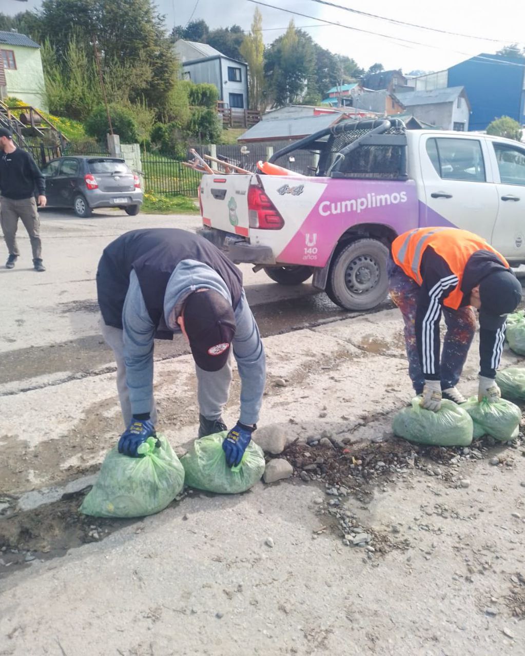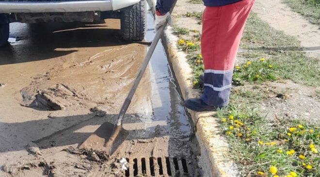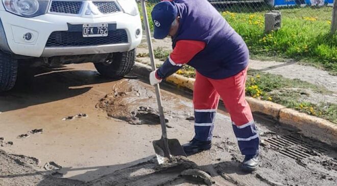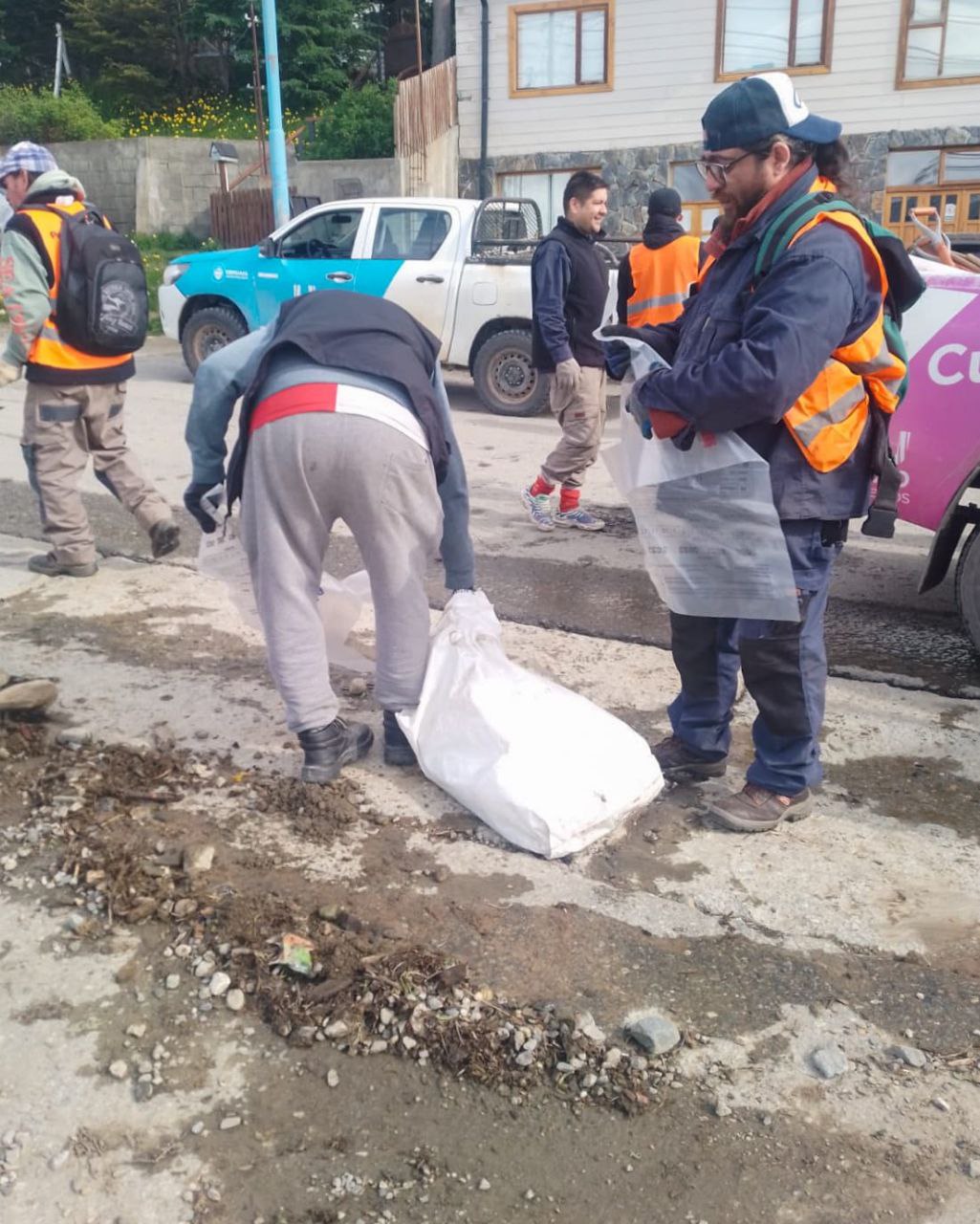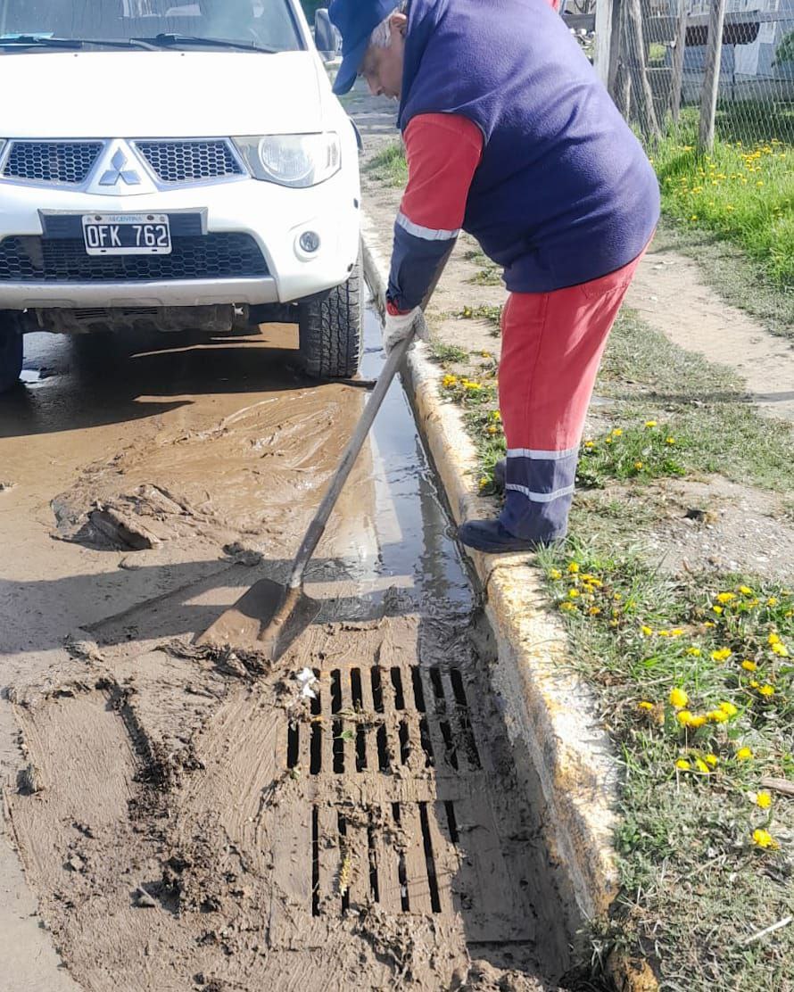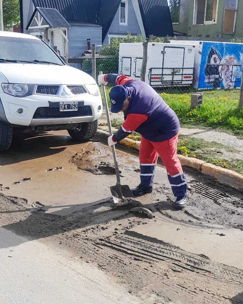 Las tareas incluyen la remoción de barros superficiales, la limpieza de alcantarillado y trabajos en pluviales, en coordinación con la empresa Agrotécnica Fueguina.