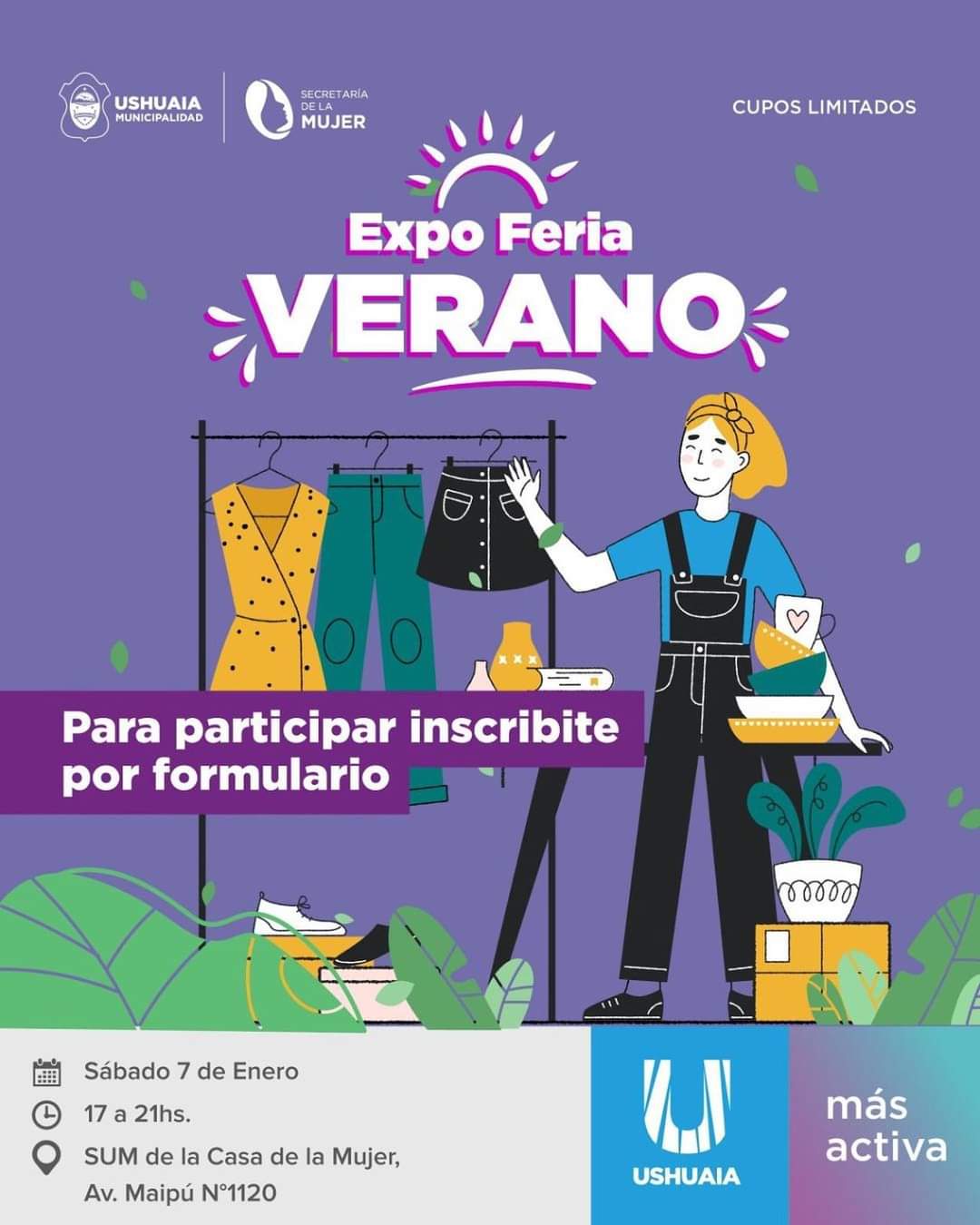 La secretaria de la Mujer de la Municipalidad de Ushuaia, Natacha Aldalla adelantó que el próximo sábado 7 de enero tendrá lugar la primera ExpoFeria de Verano con acceso al público de 17 a 21 horas en la Casa de la Mujer, ubicada en Maipú 1120.