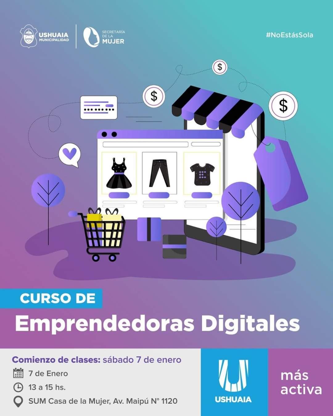 “El mismo día, de 13 a 15 horas daremos inicio al curso para Emprendedoras Digitales, para su perfeccionamiento y optimización de los recursos. También está aún abierta la inscripción y las interesadas pueden hacerlo mediante el formulario https://forms.gle/3LBF81sT3DG4B8VG8”, concluyó Aldalla.
