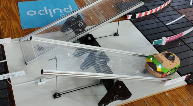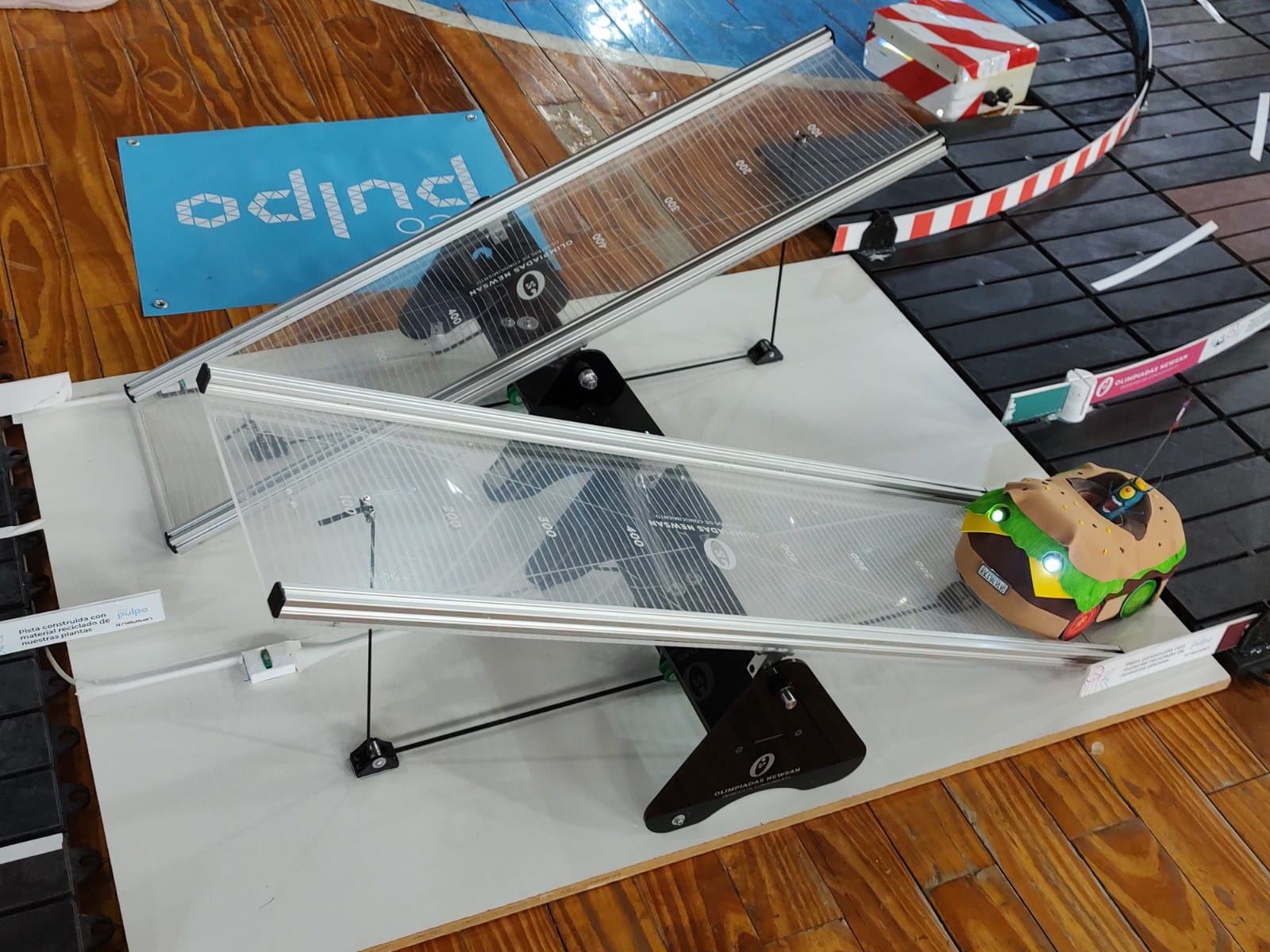 La pista fue especialmente diseñada y desarrollada por colaboradores de Newsan con material reciclado provisto por “Pulpak”, empresa que recicla más del 90% de los residuos de la compañía. La pista tuvo 36 metros lineales, 4 tipos de obstáculos diferentes hechos en impresión 3 D. Además conto con un túnel de la oscuridad donde se le colocó una cámara y un monitor externo, una rampa móvil con sensor de movimiento, un “camino resbaladizo” hecho con canicas.