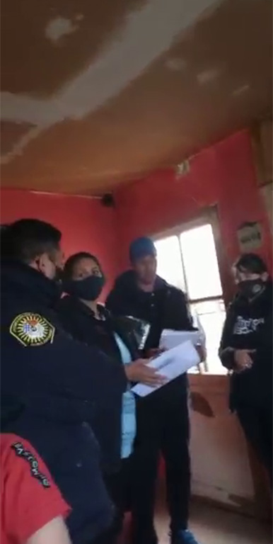 Lidia se encontró con la policía en la puerta, en fila, armados con armas largas y con una orden de desalojo y allanamiento en el domicilio donde residen ella y su familia. La estresante situación fue tal que sufrió un cuadro de presión, angustia y confusión frente a la expectativa de tener que abandonar la casa que ella construyo.