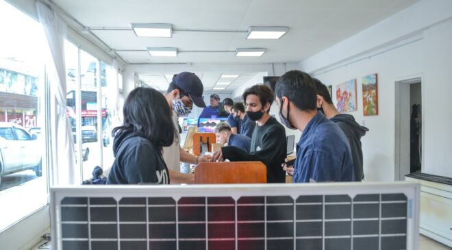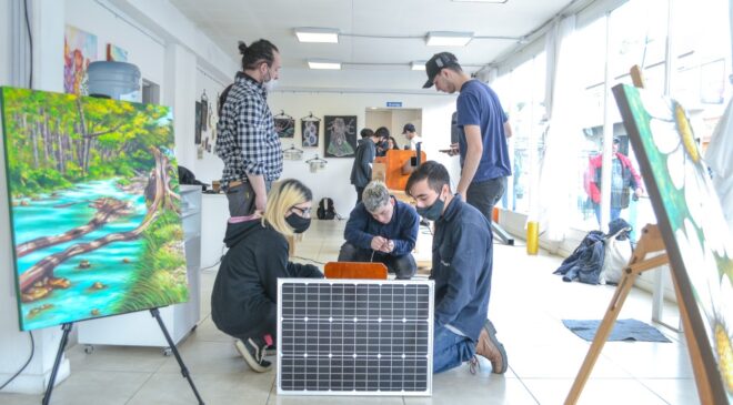El espacio fundado por el concejal Juan Carlos Pino y Cristina López está recibiendo a alumnas y alumnos del Colegio Técnico Olga B. de Arko, quienes de la mano del profesor Pablo Cardoso González y el profesor Federico Marecos se encuentran armando 20 estaciones solares de carga USB, como así también la página del centro cultural y un sistema de testeo de baterías WiFi de los paneles.