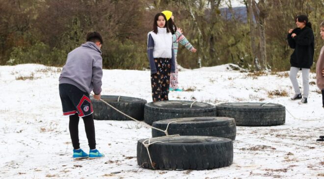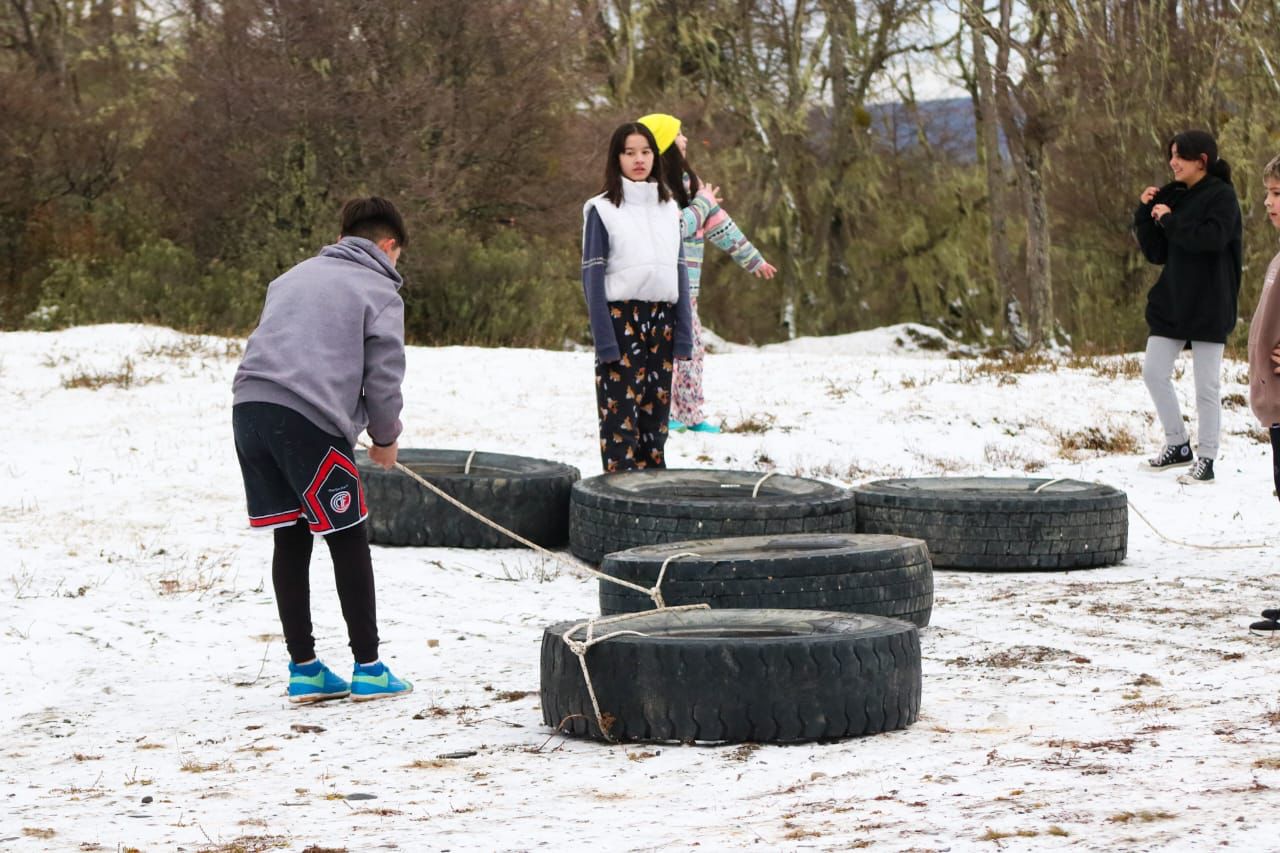 En el caso de las actividades destinadas a los más pequeños, los grupos se separan por edades, quienes participan en actividades desde las 14:00 hs. En esta primera semana, las infancias tuvieron la oportunidad de disfrutar de diversas experiencias, como salidas al campo de doma, donde pudieron jugar en los obstáculos del Tolhuin Extremo, así como excursiones a la Laguna CAMI para jugar con la nieve y la laguna congelada, y visitas a la Laguna del Indio.