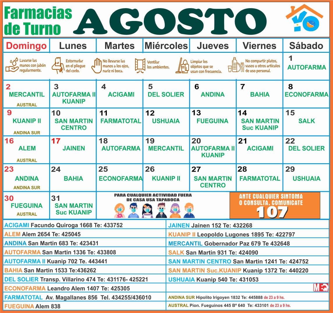 Farmacias de turno mes de agosto en Ushuaia DestacadaNovedadesSalud By Super User Last updated Ago 3, 2020 Share FacebookTwitterGoogle+WhatsAppEmail Share FacebookTwitterGoogle+WhatsAppEmail
