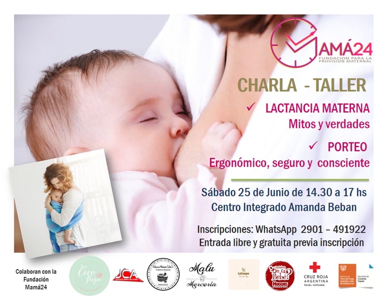 En un espacio donde se desmitificaran concepciones sobre la lactancia materna y el porteo, Fundacion Mama24 invita a la comunidad este sábado 25 de junio de 14:30 a 17:00 en el Centro Integrado Amanda Beban a una charla/taller sobre Lactancia y Porteo Seguro.
