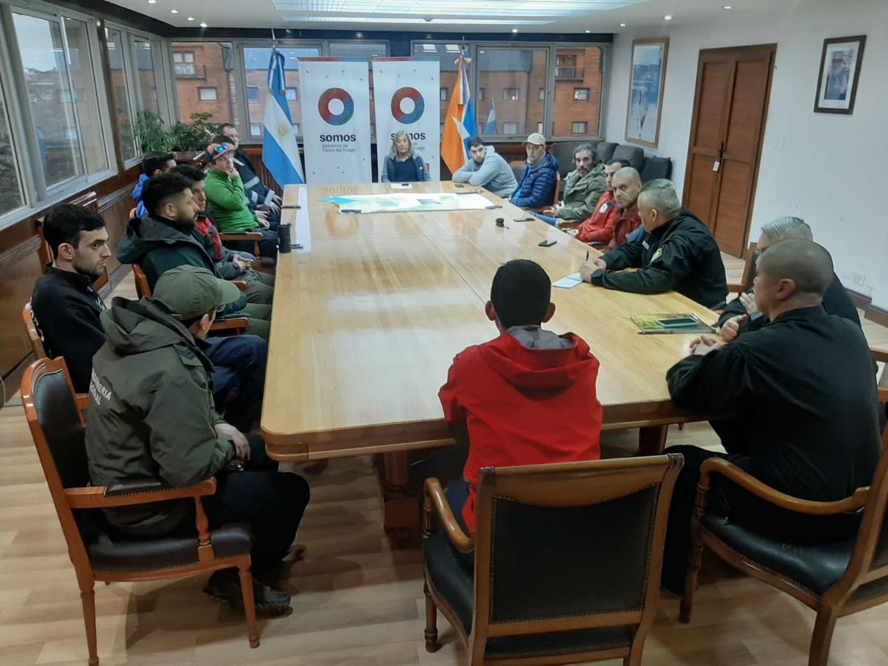 De las reuniones realizadas el sábado y domingo, participaron la Policía Provincial; Defensa Civil Provincial y de Ushuaia; Gendarmería Nacional; representantes de la Comisión de Auxilio; el Club Andino Ushuaia; miembros de la Asociación de Guías de Montaña y asesores expertos en Península Mitre.