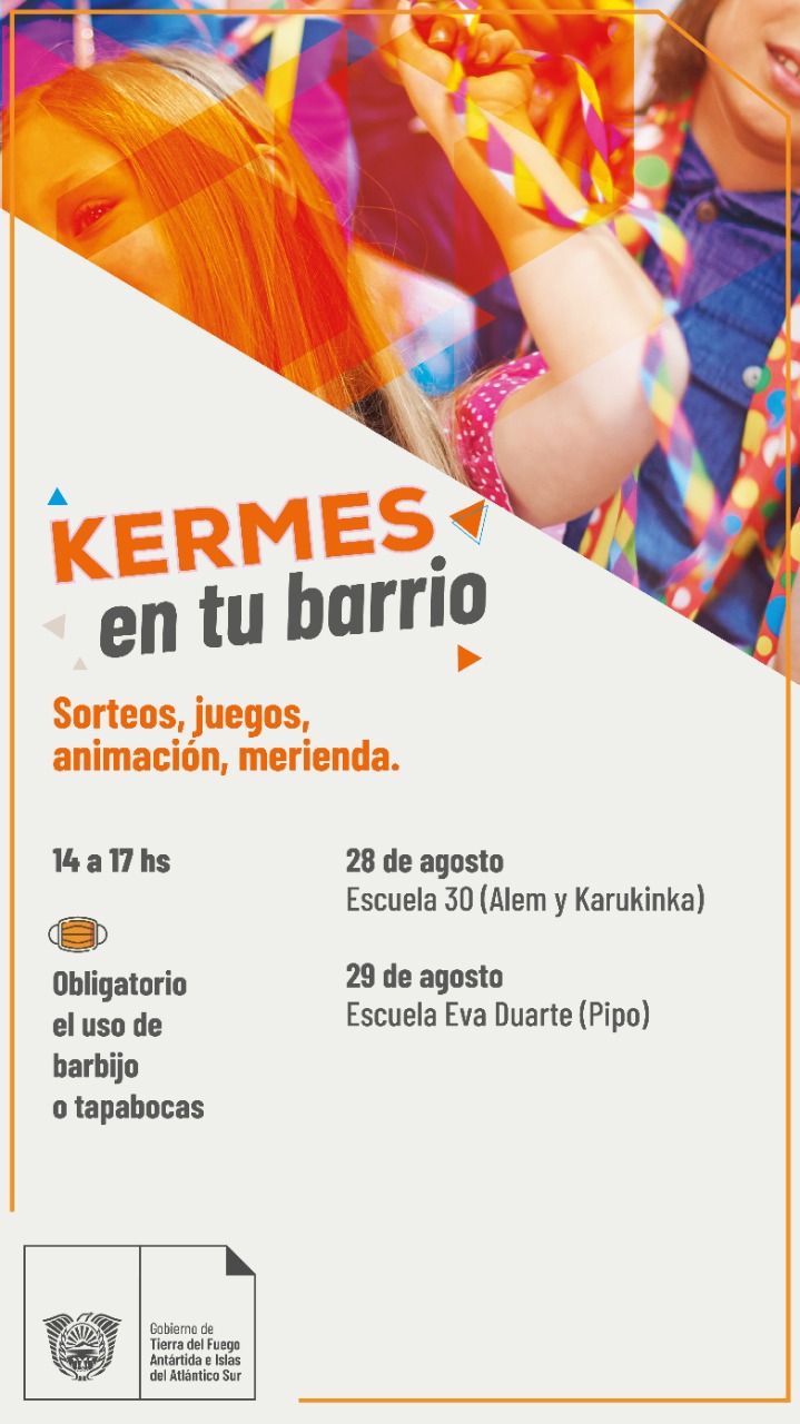En el marco de las actividades programadas por el Gobierno de Tierra del Fuego organiza la «Kermes en tu barrio» en los barrios Kaupen y Pipo, acercándoles distintas actividades con la puesta en escena de «juegos de antaño”, espectáculos circenses, sorteos, juegos, animación, merienda y la implementación de mesas con juegos de ajedrez y Show Musical, entre otros.