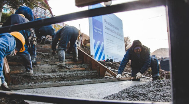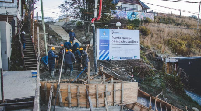 Avanzan los trabajos de construcción de la nueva escalera en la calle Belgrano, entre San Martín y Gobernador Deloqui, donde completaron su hormigonado. La secretaria de Planificación e Inversión Pública, Gabriela Muñiz Siccardi indicó que “se volcaron 9,50m³ de hormigón para completar con el hormigonado de toda la escalera y se continuará con el trabajo restante”.