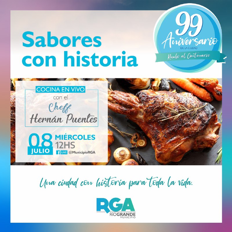 A las 12.00 horas, a través de las redes sociales oficiales del Municipio (@MunicipioRGA), se transmitirá en vivo “Sabores con Historia”. Hernán Puentes, reconocido chef local, compartirá una receta realizada con ingredientes cien por ciento autóctonos, utilizados por nuestros ancestros. Un plato regional, con salicornia, hongos de la zona, licor de calafate y otros elementos propios de nuestro lugar.