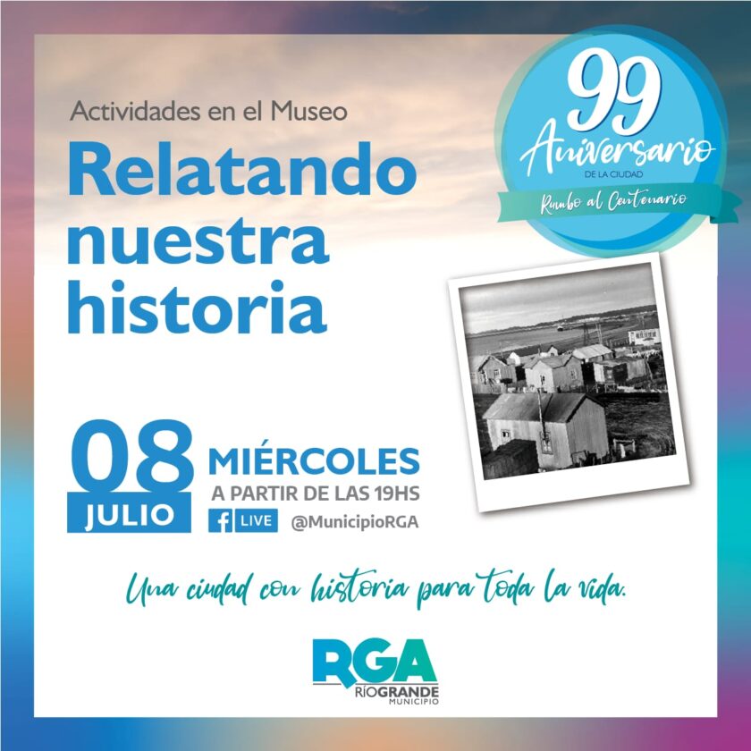 Además, a partir de las 19 horas, se presentará “Relatando nuestra Historia”. El historiador Esteban Rodríguez y ‘Mingo’ Gutiérrez brindarán una charla y exposición de contenidos históricos de nuestra ciudad, sobre su fundación y hechos relevantes. A continuación, se llevará a cabo la peña folklórica virtual “Uniendo Ciudades”, en la cual participarán las tres localidades de la provincia; y luego se proyectarán cápsulas animadas que fueron realizadas por artistas locales en el Museo Municipal “Virginia Choquintel”. Dicho evento virtual también podrá disfrutarse en vivo a través del Facebook del Municipio de Río Grande (@MunicipioRGA).