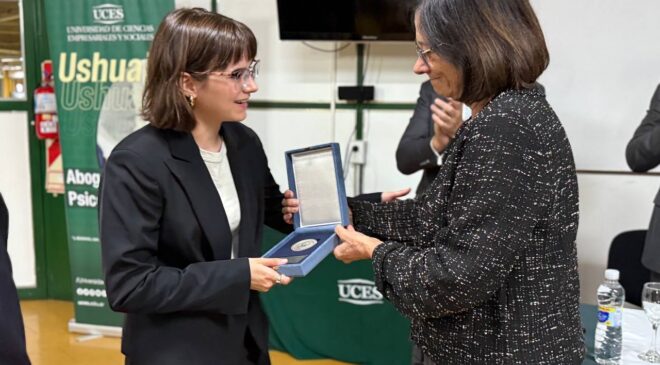 Durante el evento, se celebró especialmente el logro de la Dra. Julieta Frick, quien recientemente se convirtió en la primera profesional en obtener un doctorado en Derecho habiendo realizado toda su formación académica en Tierra del Fuego. Este hito fue destacado por los Ministros del Superior Tribunal y los demás presentes, subrayando el crecimiento y la excelencia académica de la región.