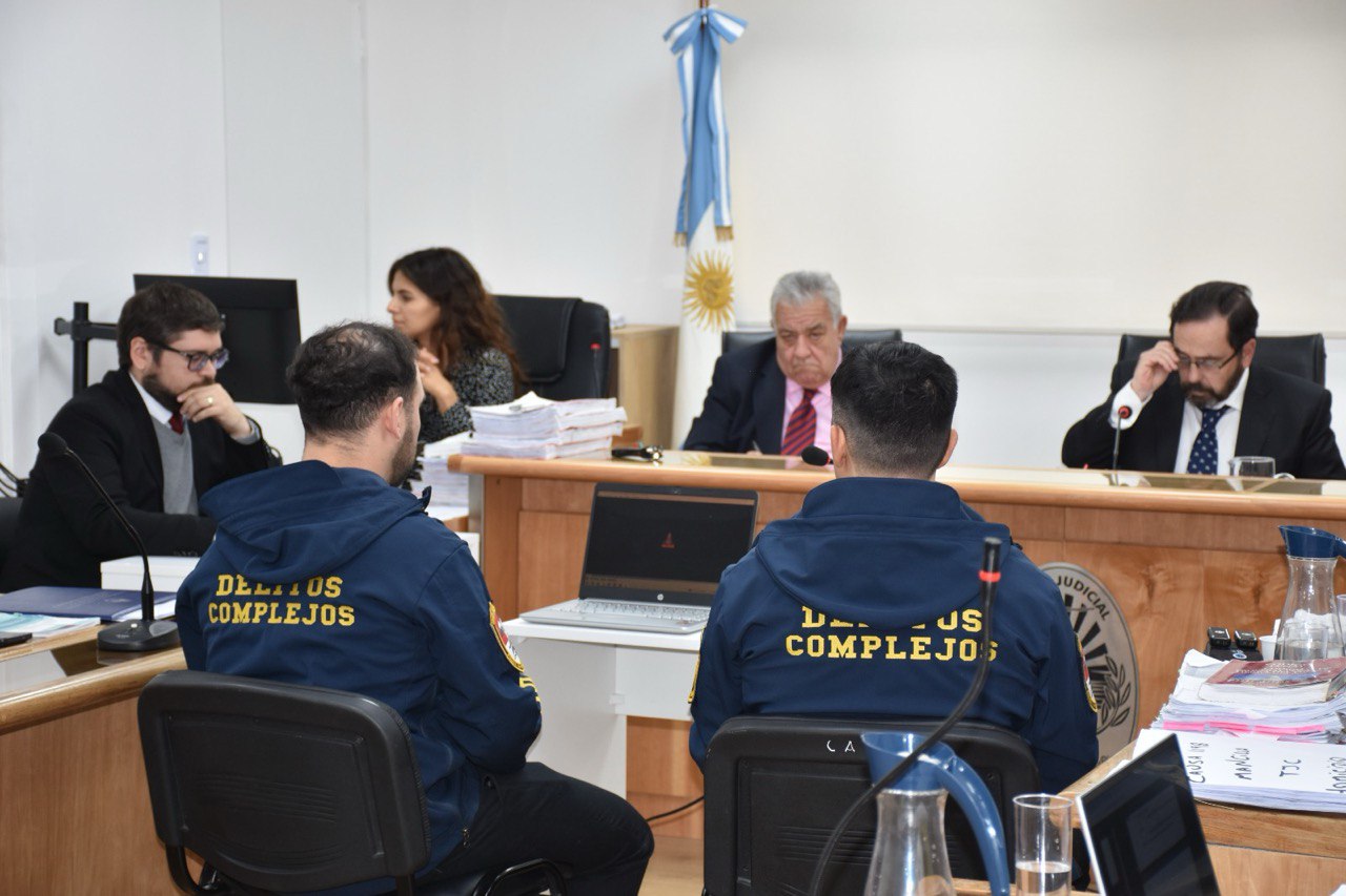 El Tribunal está presidido por el juez Eduardo López, con la participación de los jueces Verónica Marchisio y Juan José Varela como vocales. Al finalizar la jornada, el Tribunal dispuso un cuarto intermedio , cuando se prevé la declaración de personal de la División Delitos Complejos y de la Policía Científica.