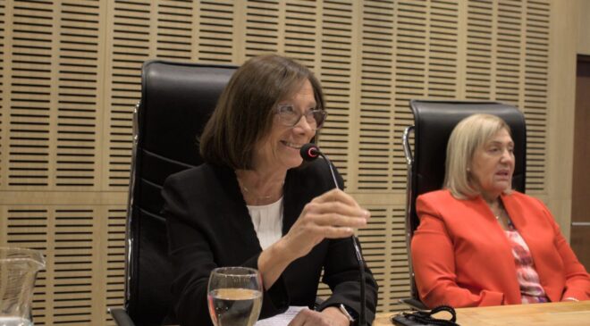 Finalmente, la presidenta compartió con los presentes la carta de un Magistrado anciano a su hijo, recién designado Juez. Se trata de la carta que escribió en el siglo XVIII), Fray Benito Jerónimo Feijóo (1676-1764).