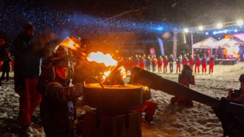 Ambos deportistas portaron antorchas para encender el fuego del pebetero uniéndose a los más de 60 esquiadores de Cerro Castor y Club Andino Ushuaia, que iluminaron la montaña descendiendo con antorchas, portando banderas argentinas y fueguinas en el marco de una copiosa nevada, siendo uno de los momentos simbólicos más importante de esta Fiesta.