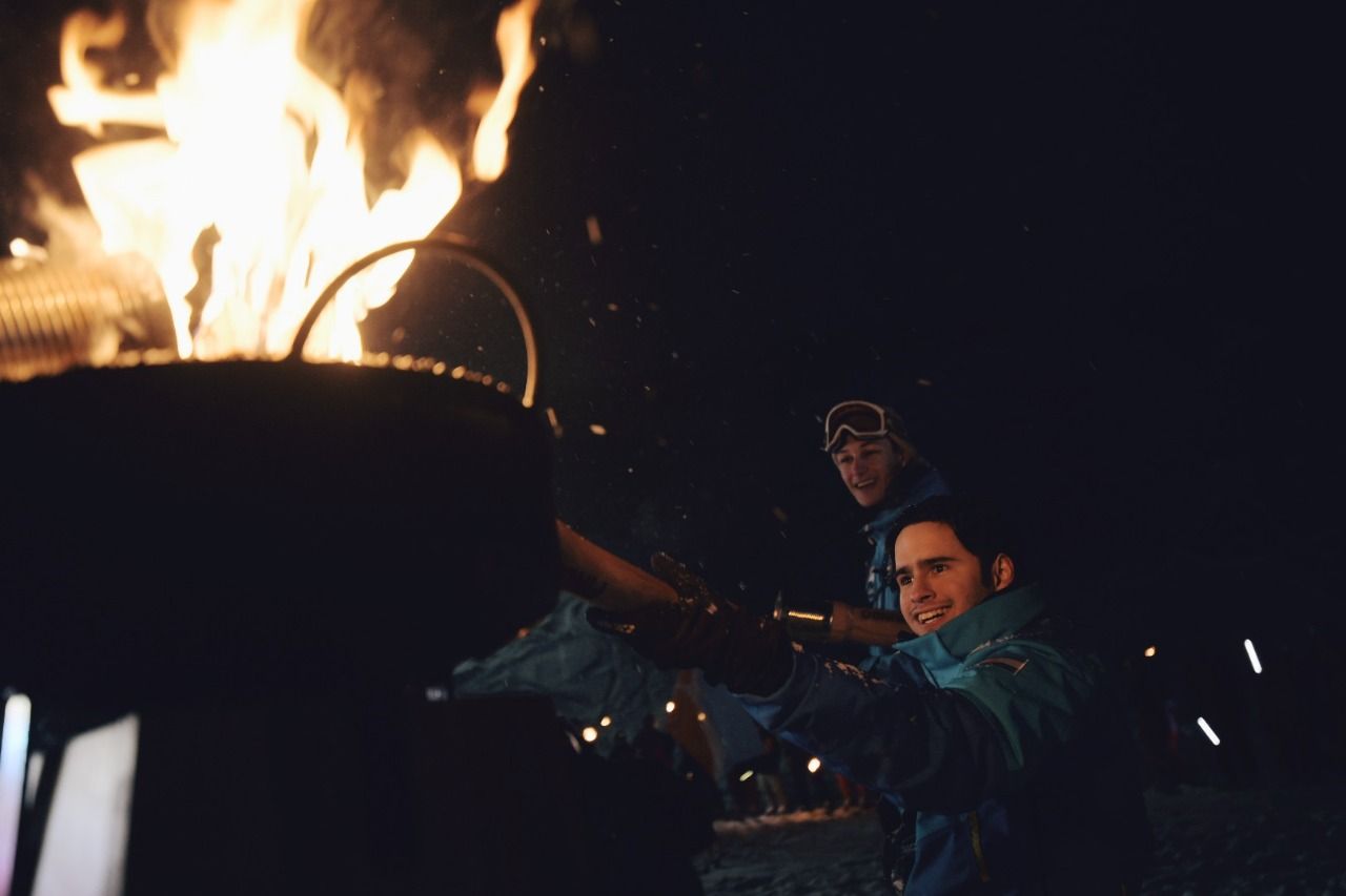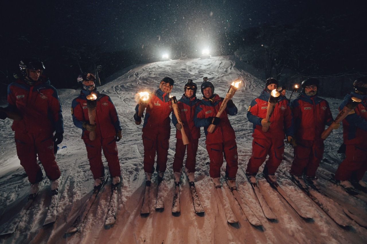 Ambos deportistas portaron antorchas para encender el fuego del pebetero uniéndose a los más de 60 esquiadores de Cerro Castor y Club Andino Ushuaia, que iluminaron la montaña descendiendo con antorchas, portando banderas argentinas y fueguinas en el marco de una copiosa nevada, siendo uno de los momentos simbólicos más importante de esta Fiesta.