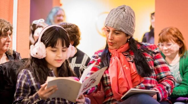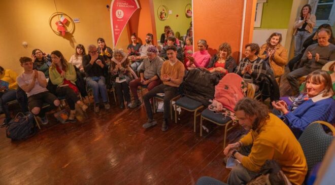 La Secretaría de Cultura y Educación de la Municipalidad de Ushuaia junto a la Biblioteca Popular Sarmiento realizaron el Café Literario “Día de la Poesía Fueguina, homenaje a Julio Leite” en la Antigua Casa Beban, donde vecinos y vecinas disfrutaron de obras de autores locales, así como un espacio de lectura espontánea y diálogo sobre la misma.