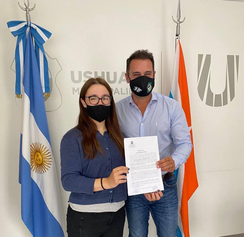 La Municipalidad de Ushuaia, por medio del subsecretario de Desarrollo Económico, gustavo Ventura mantuvo un encuentro con Secretaria general de la Asociación del Personal de Organismos de Control, Valeria Regueiro, en el que se realizó la firma de un acuerdo para acercar a todos sus afiliados y afiliadas los beneficios y promociones de la Tarjeta +U.