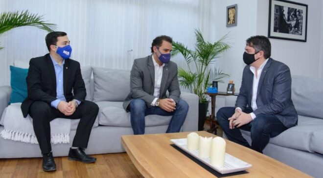 El Intendente Martín Perez, junto al secretario de Gestión Ciudadana, Gonzalo Ferro, mantuvieron un encuentro con el subsecretario de Desarrollo Económico del Municipio de Ushuaia, Gustavo Ventura, con el fin de avanzar en el trabajo articulado que se está llevando adelante, en torno a diferentes iniciativas que buscan impactar en la economía y en el desarrollo emprendedor provincial.
