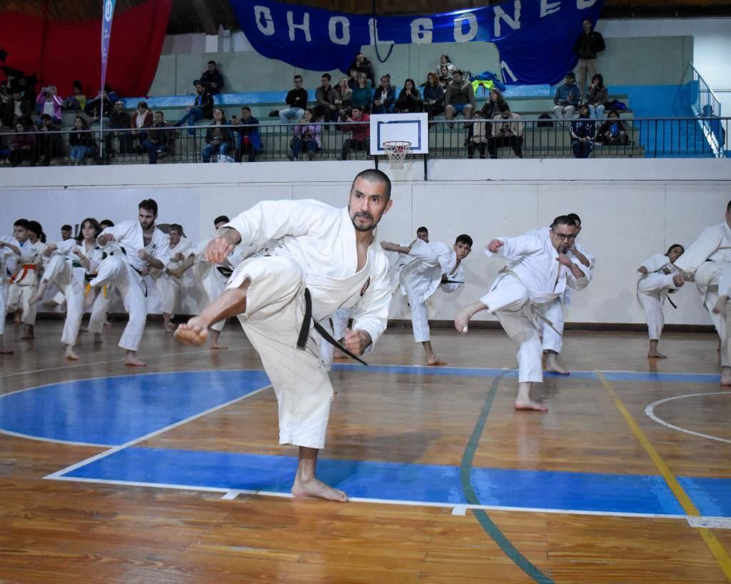La cancha 4 del polideportivo municipal fue el dojo para que niños, niñas, jóvenes y adultos puedan convocarse y poner en práctica todas las habilidades del arte marcial, para recordar durante todo momento a uno de los principales referentes del karate-do en Tierra del Fuego.