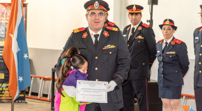 Con la presencia de la comisión directiva de Bomberos Voluntarios y su titular, Pascual Lombardo, durante el acto se hizo entrega de reconocimientos al personal que cumplió 15 años al servicio de la comunidad de Río Grande y, por parte de la Fuerza Aérea y de la Policía Provincial, las autoridades de la comisión directiva recibieron sendos presentes.