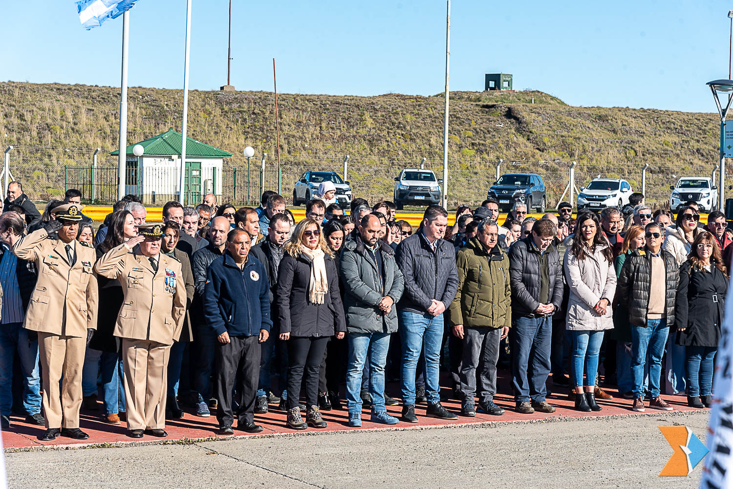 Del acto que se realizó en la costa del río Grande en la zona de los monumentos malvineros, participaron el Gobernador de la Provincia, prof. Gustavo Melella y el intendente municipal, Lic. Martín Pérez junto a las legisladoras Myriam Martínez (FORJA) y Natalia Gracianía (RU) y el legislador Federico Greve (FORJA) junto a referentes institucionales y de fuerzas armadas y de seguridad.