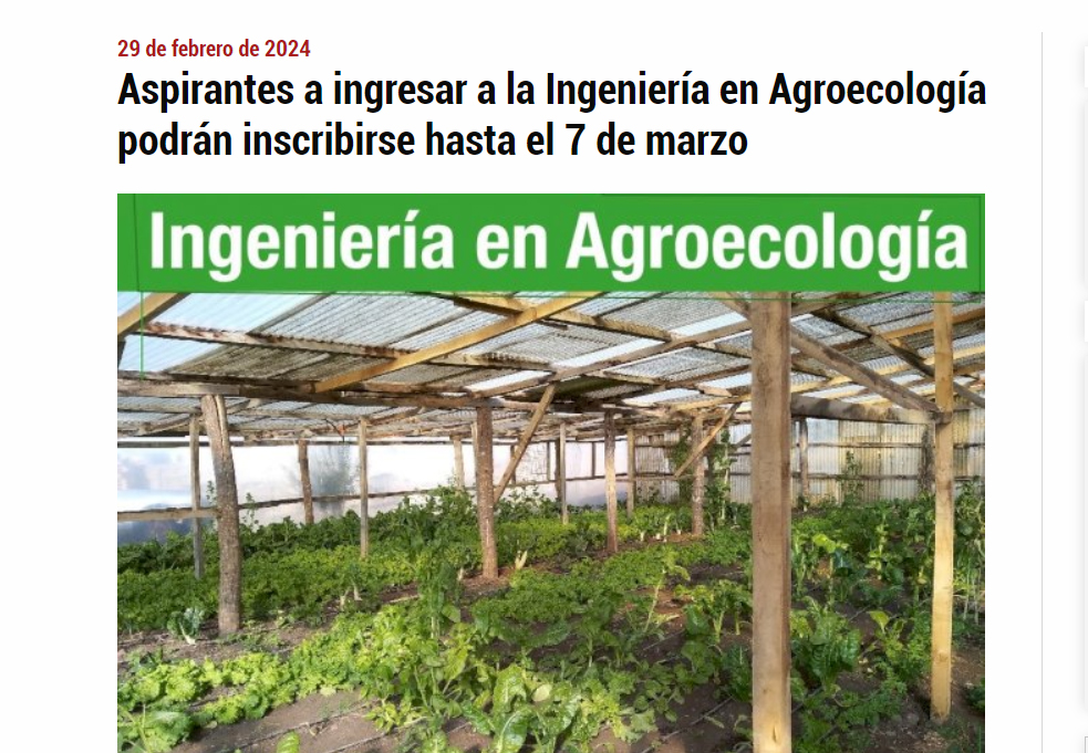 “En el marco de su 70ª Sesión Ordinaria, el Consejo Superior de la Universidad Nacional de Tierra del Fuego, Antártida e Islas del Atlántico Sur, aprobó en septiembre de 2023 la creación de la carrera Ingeniería en Agroecología que se dictará a través del Instituto de Ciencias Polares, Ambiente y Recursos Naturales (ICPA-UNTDF) en la sede universitaria de Río Grande.